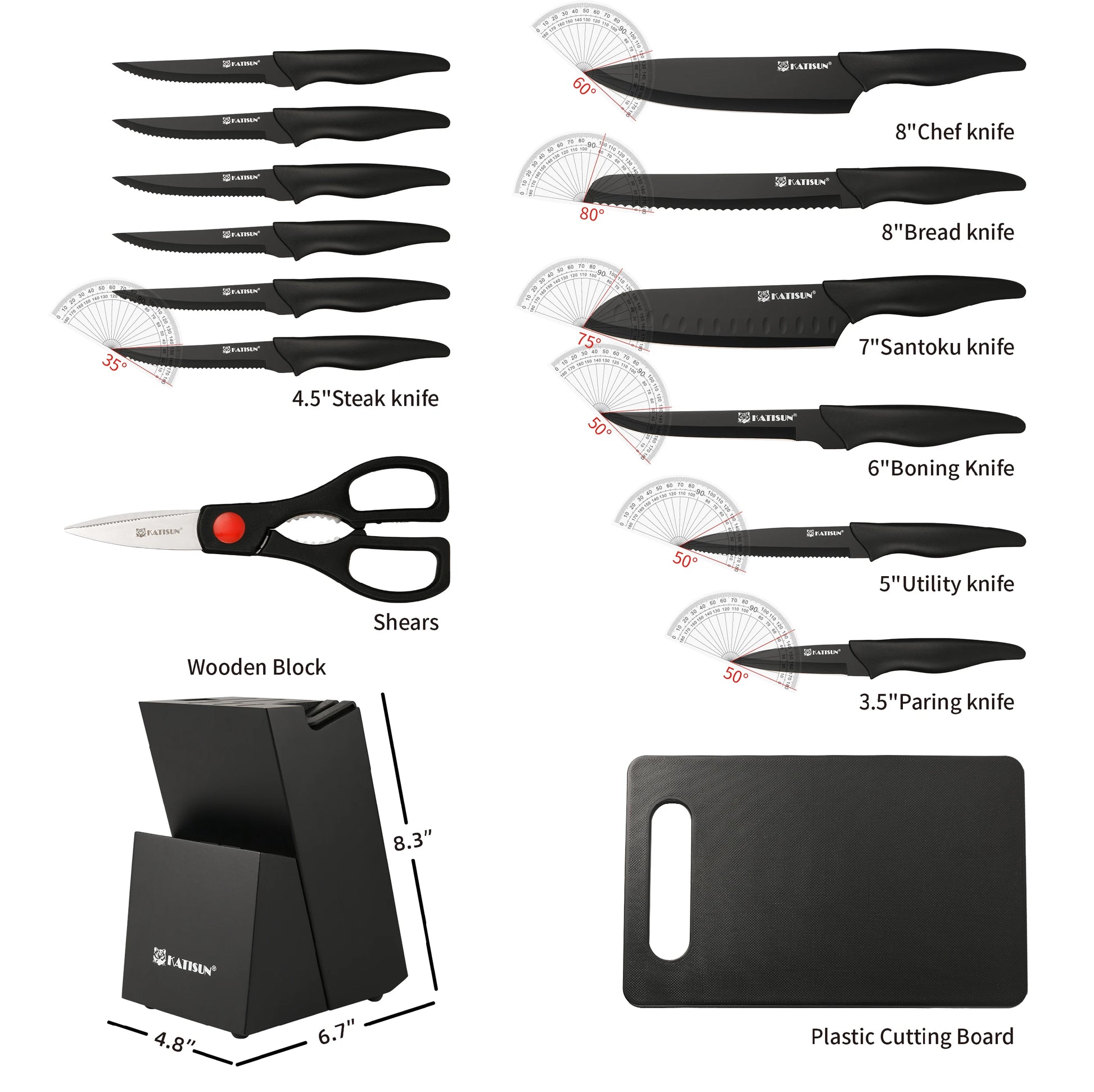 Katisun Carbon Steel Kitchen Knife Block Set With Board