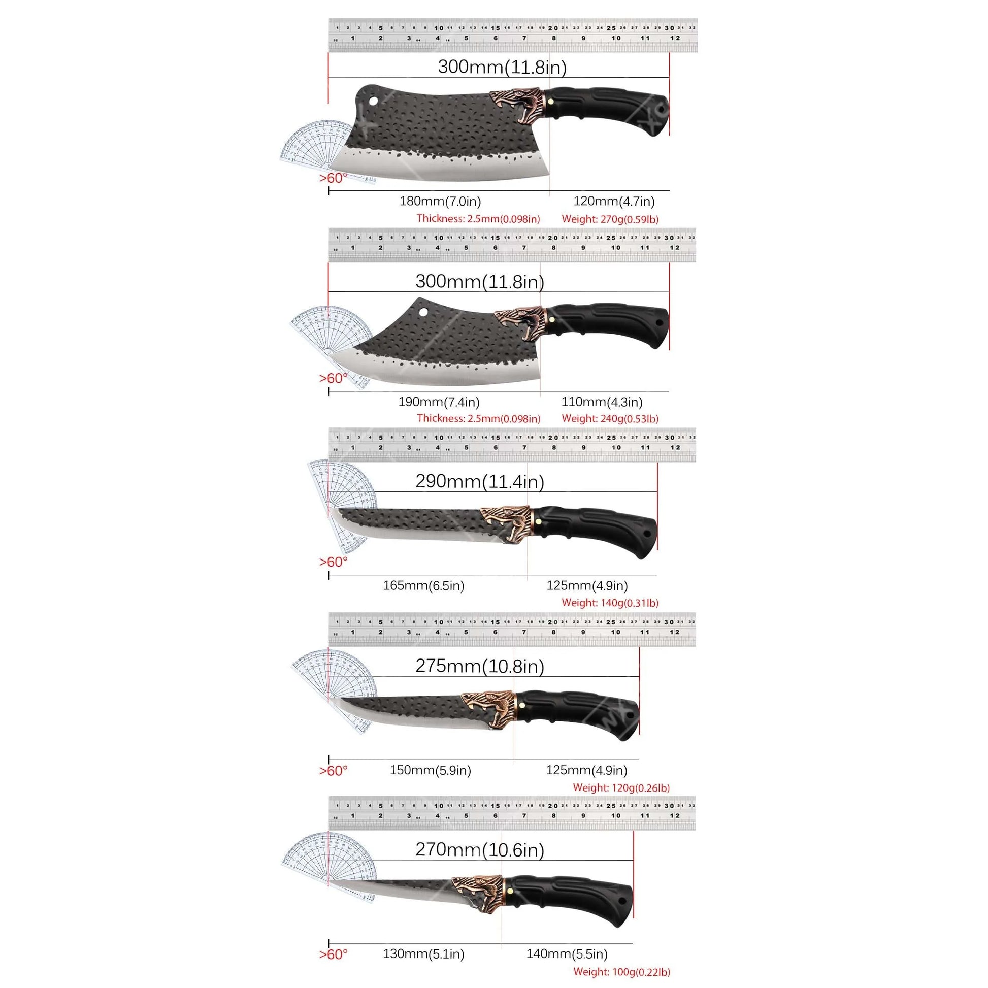 Sharp Chef Knife: Our chef knives are constructed from premium japanese steel. It performs well in toughness and durability. Like traditional Japanese kitchen knives, blades have a precision cutting quality. Each blade is handcrafted to create a precise, long-lasting cut. The sharp blade makes the cooking safe and effortless. (Warm Tip: Always hand washes those forged in fire knives!)