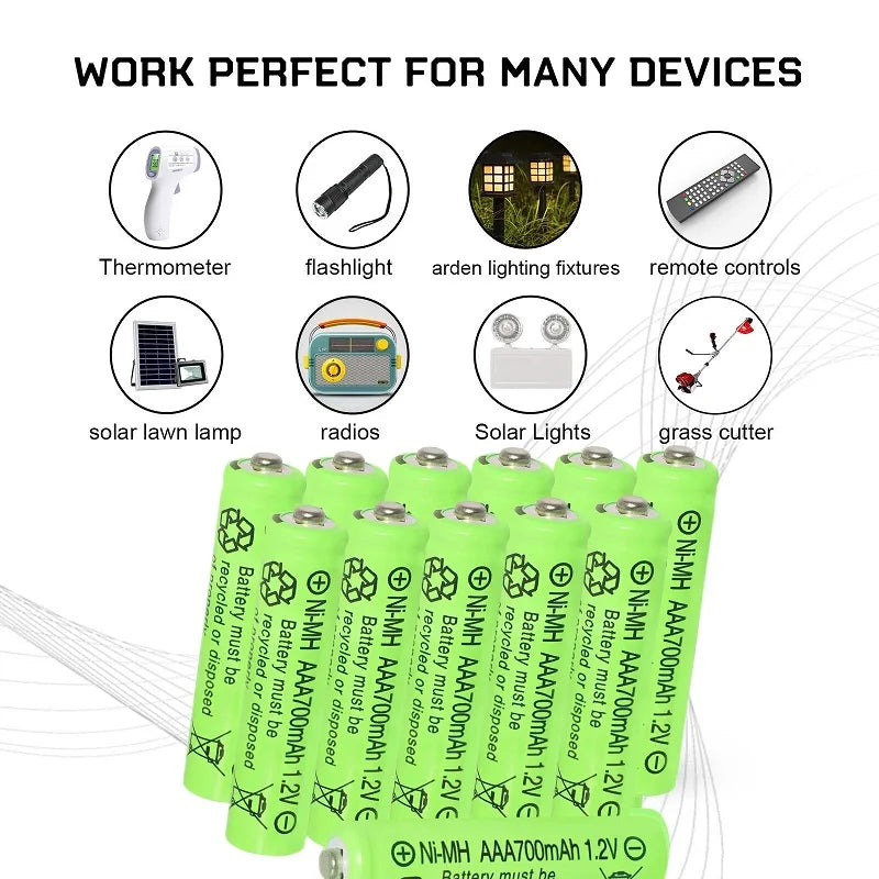 AAA Rechargeable Batteries Set 700mAh 1.2V Ni-MH Triple A Batteries High Capacity for Garden Landscaping Outdoor Solar Lights