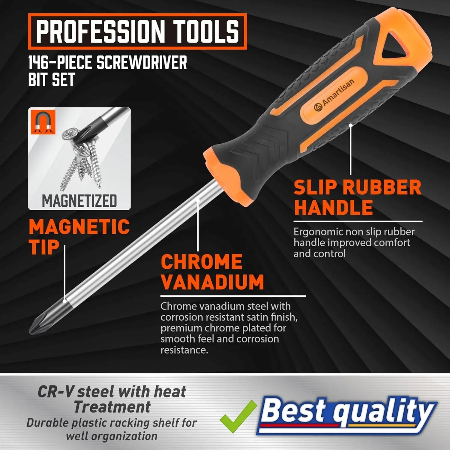 146-piece Magnetic Screwdrivers DIY Tools Set Racking for Men Tools Gift, Includs Precision screwdriver, Magnetizer, Key Set, Nut Driver and Bit Set