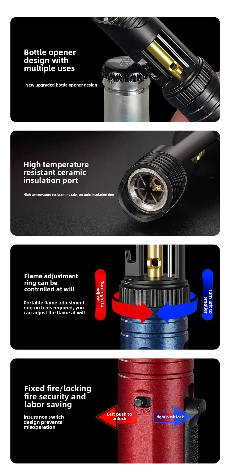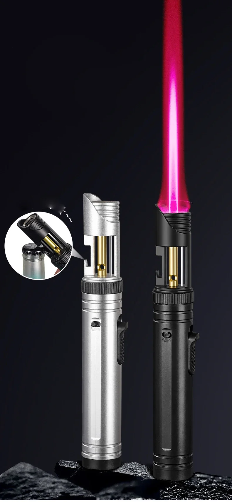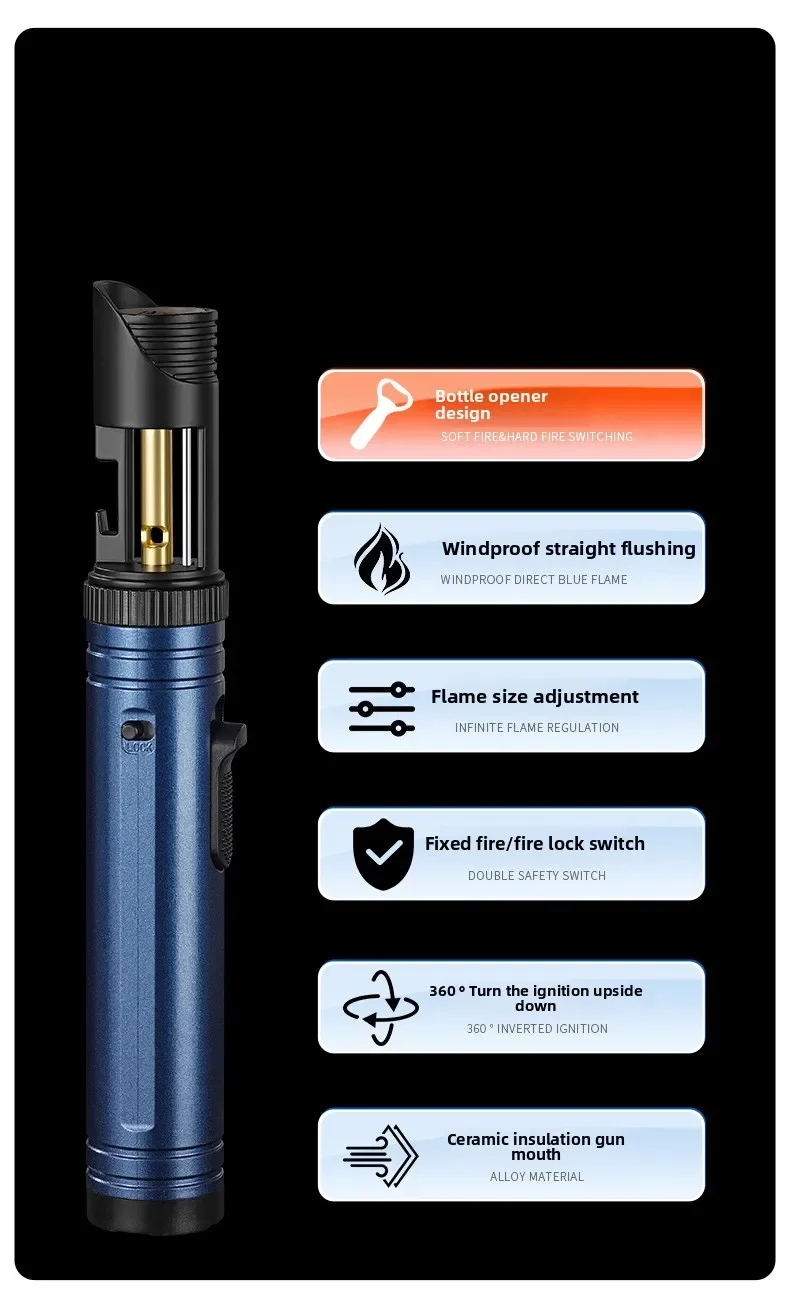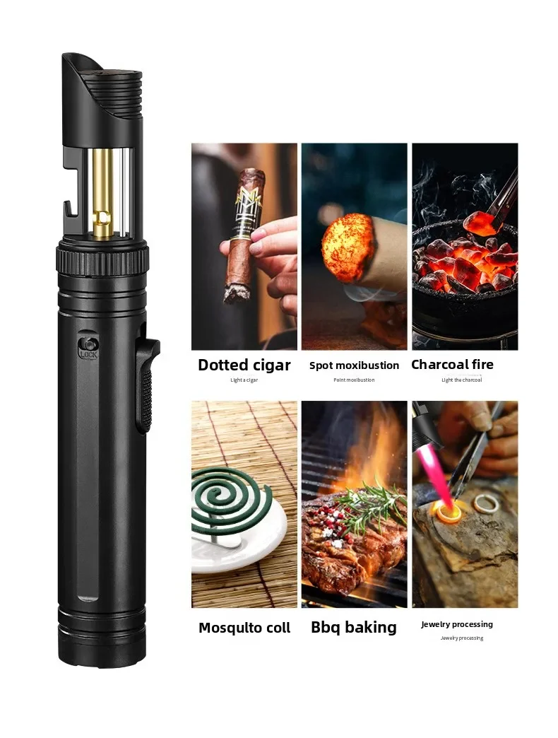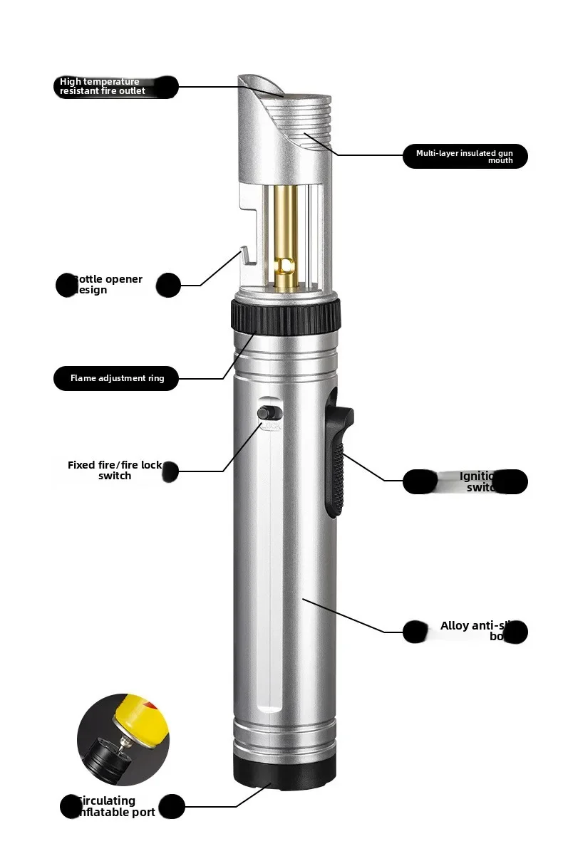 Large Capacity Outdoor Multifunctional Lighter, Bottle Opener Metal Windproof Turbine Camping Kitchen Gas Welding Gun Lighter