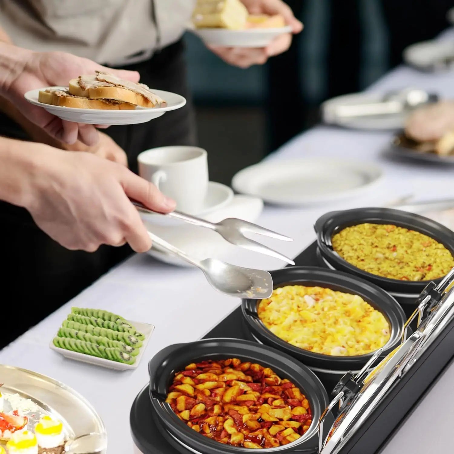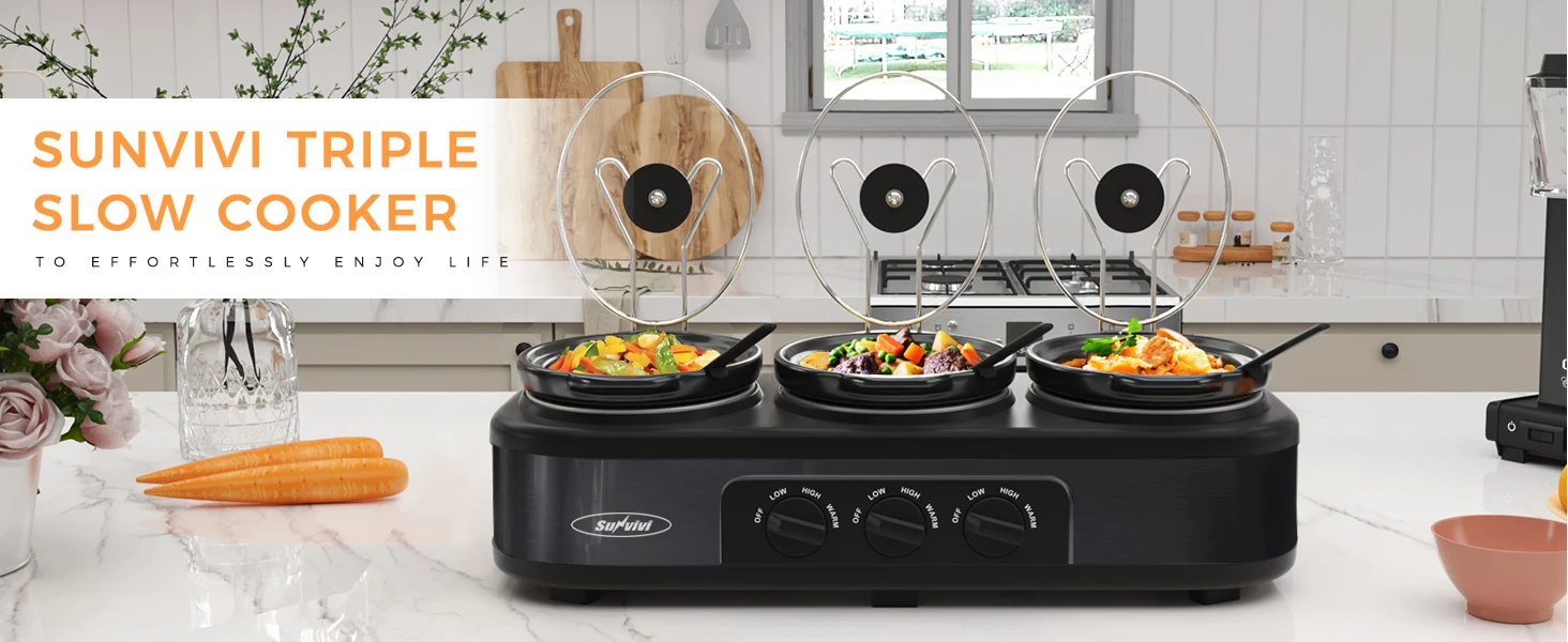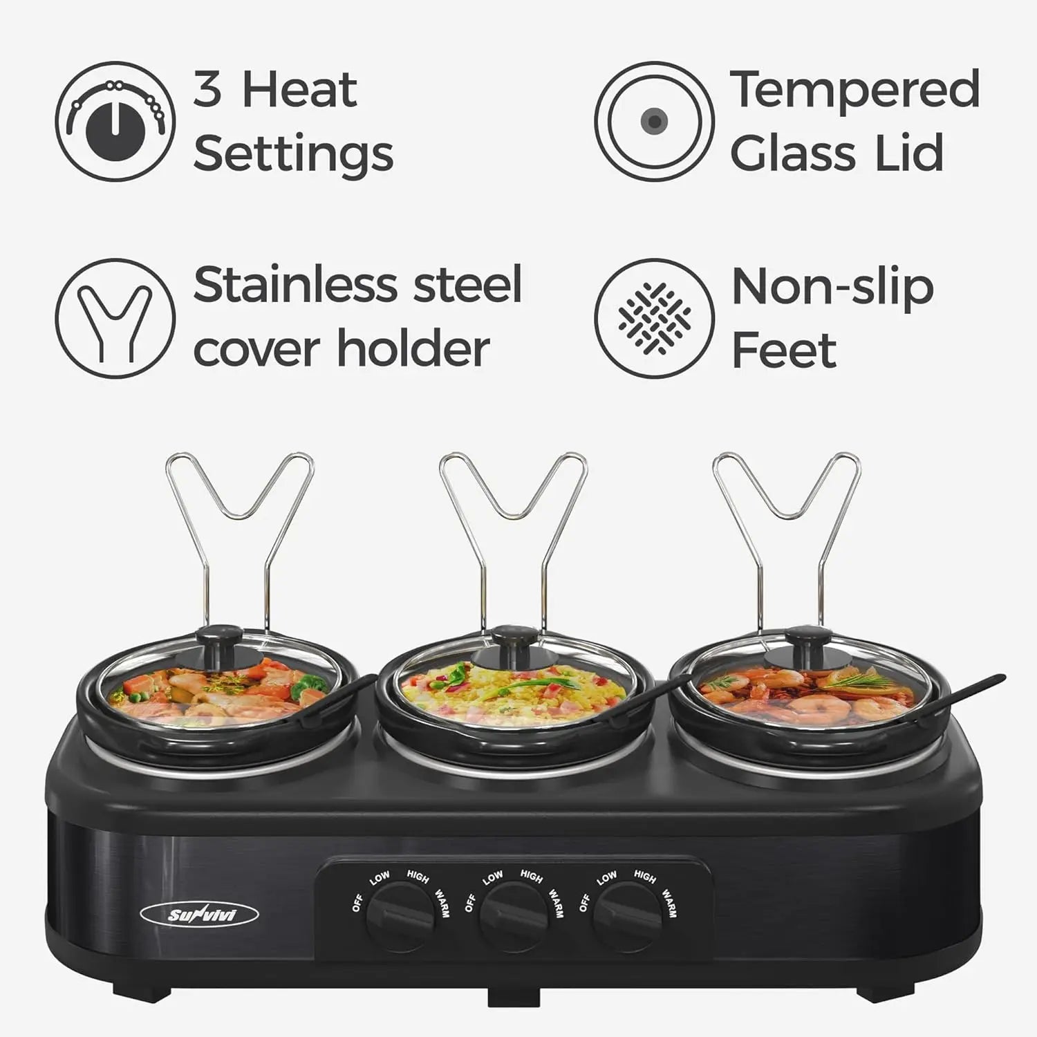 Triple Slow Cooker Buffet Servers and Warmer,3 Pot Food Small Mini Manual Slow Cooker with Adjustable Temp Stainless Steel Lid R